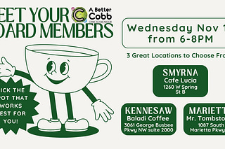 We hope to see you in Kennesaw, Marietta or Smyrna at tonight's Meet Your Board Members events!